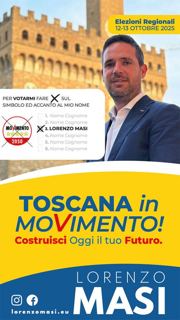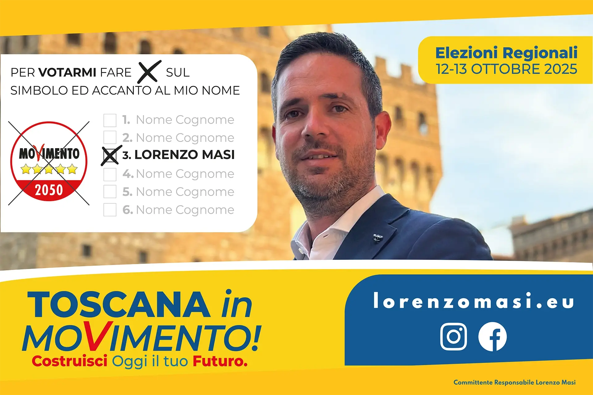 Il 12 e 13 ottobre alle elezioni regionali vota MOVIMENTO 5 STELLE e fai una X su 3.LORENZO MASI puoi farlo nel Comune di Firenze (Firenze 1)